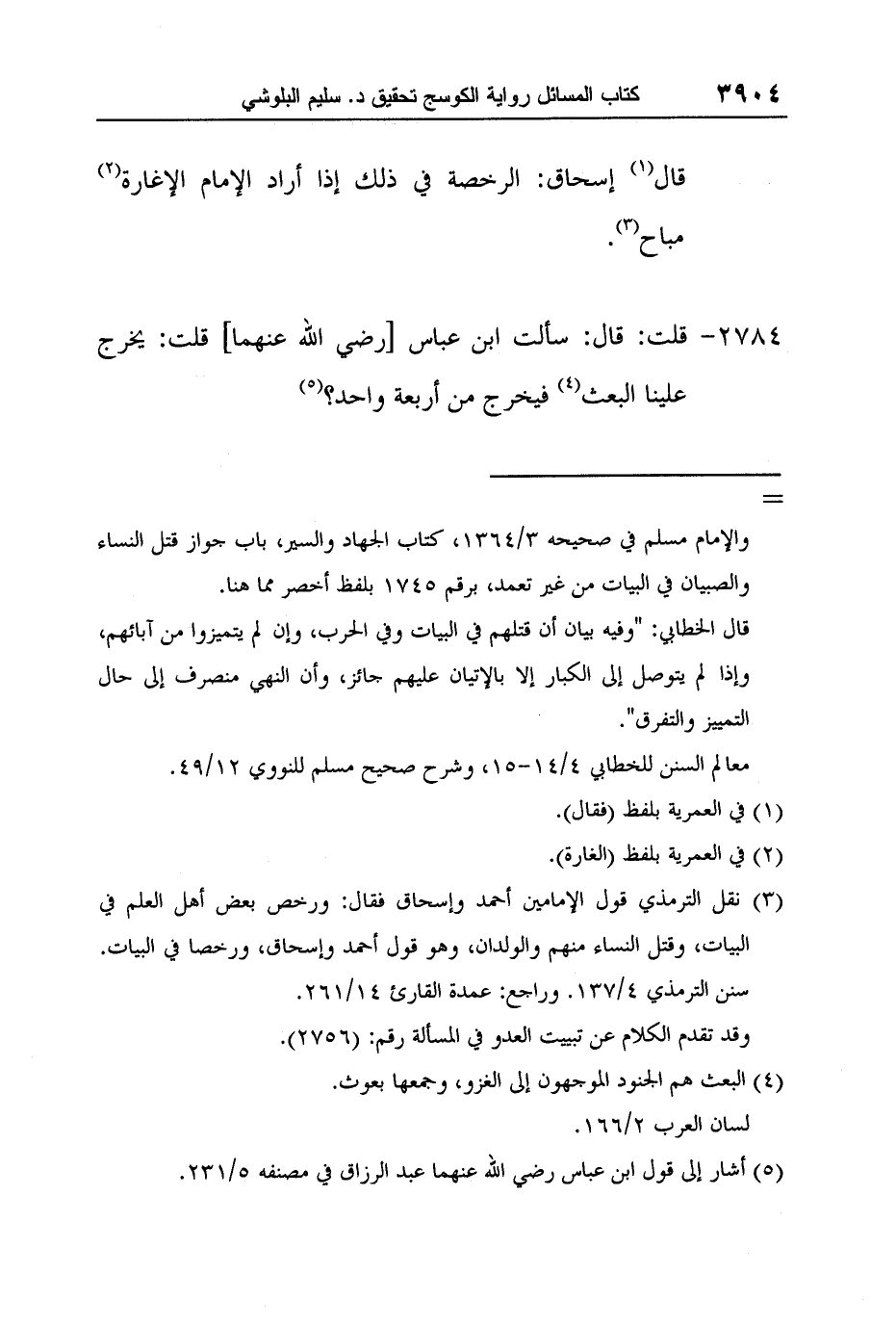 3 نقل الترمذي قول الإمامين أحمد وإسحاق فقال: ورخص بعض أهل العلم في البيات، وقتل النساء منهم والولدان، وهو قول أحمد وإسحاق، ورخصا في البيات. سنن الترمذي 4/137. وراجع: عمدة القارئ 14/261.