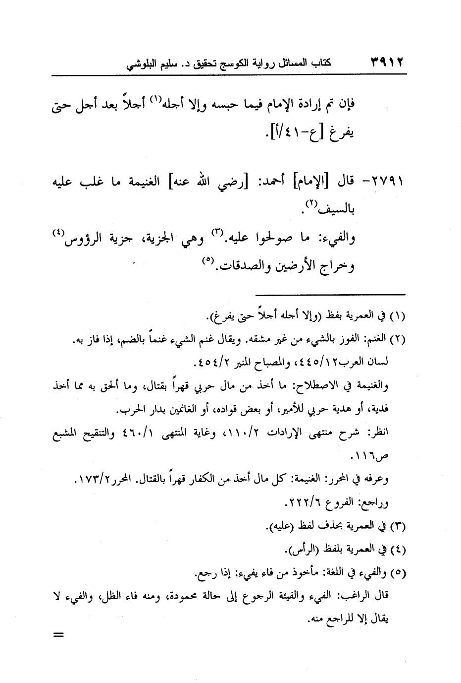 [2791-] قال [الإمام] أحمد: [رضي الله عنه] الغنيمة ما غلب عليه بالسيف2.