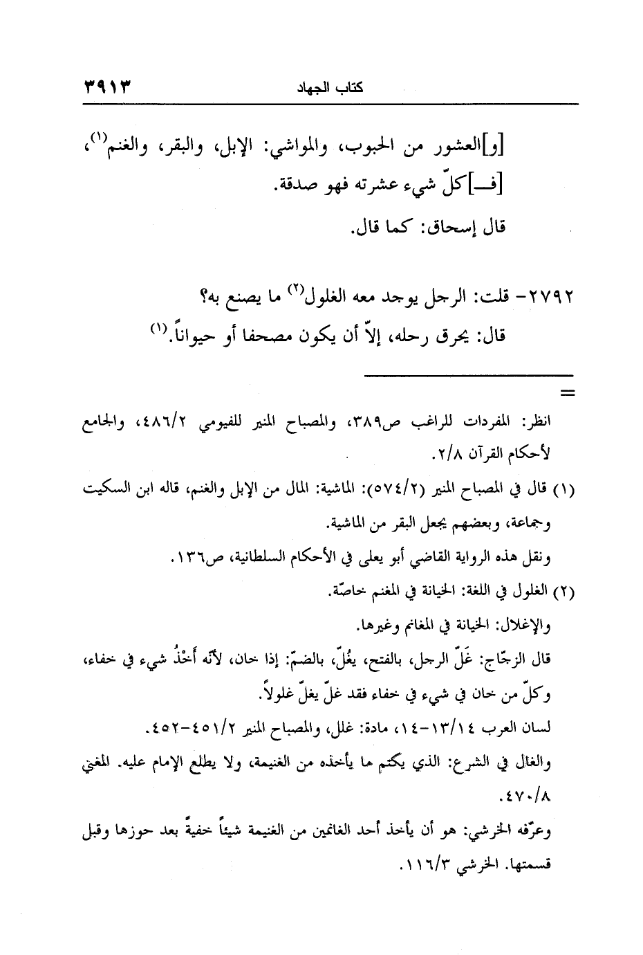 قال: يحرق رحله، إلاّ أن يكون مصحفا أو حيواناً.3