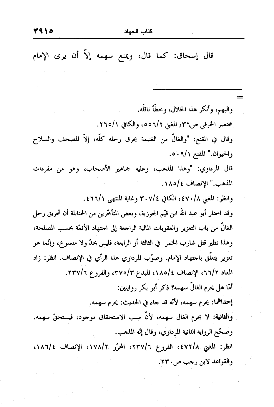 قال إسحاق: كما قال، ويمنع سهمه إلاّ أن يرى الإمام