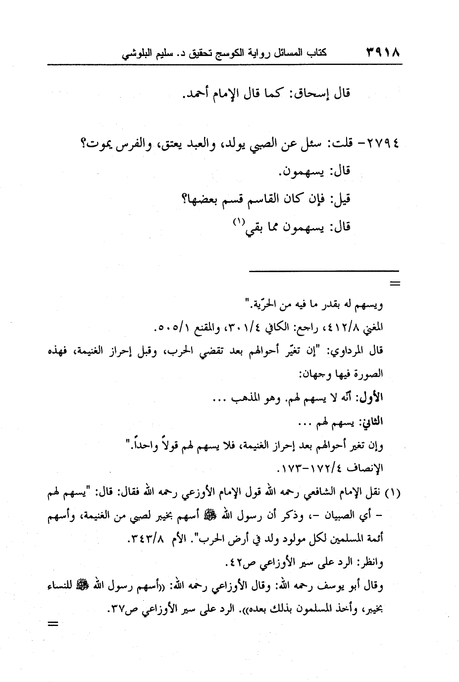 1 نقل الإمام الشافعي رحمه الله قول الإمام الأوزعي رحمه الله فقال: قال: "يسهم لهم - أي الصبيان -، وذكر أن رسول الله صلى الله عليه وسلم أسهم بخيبر لصبي من الغنيمة، وأسهم أئمة المسلمين لكل مولود ولد في أرض الحرب". الأم 8/343.