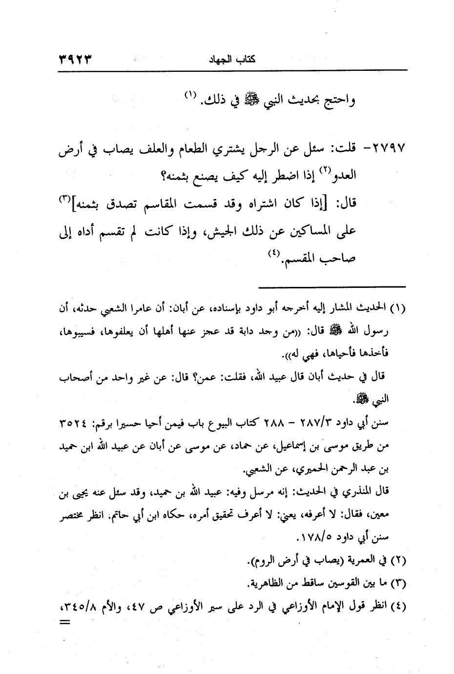 4 انظر قول الإمام الأوزاعي في الرد على سير الأوزاعي ص 47، والأم 8/345، ومعالم السنن 4/35، وشرح السنة 11/123، وشرح النووي على صحيح مسلم 12/102.