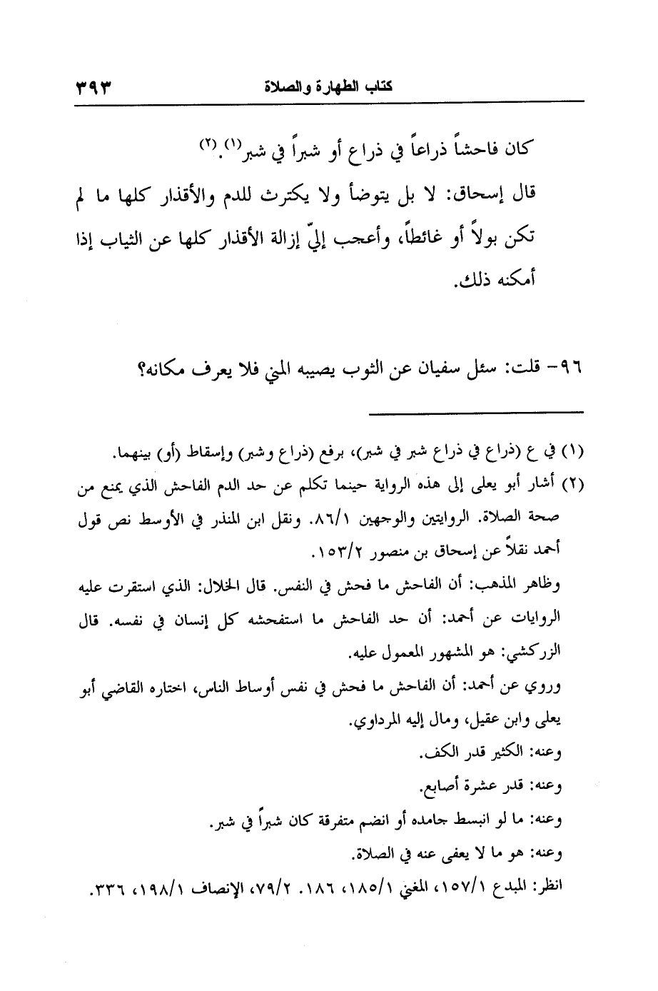 2 أشار أبو يعلى إلى هذه الرواية حينما تكلم عن حد الدم الفاحش الذي يمنع من صحة الصلاة. الروايتين والوجهين 1/86. ونقل ابن المنذر في الأوسط نص قول أحمد نقلاً عن إسحاق بن منصور 2/153.