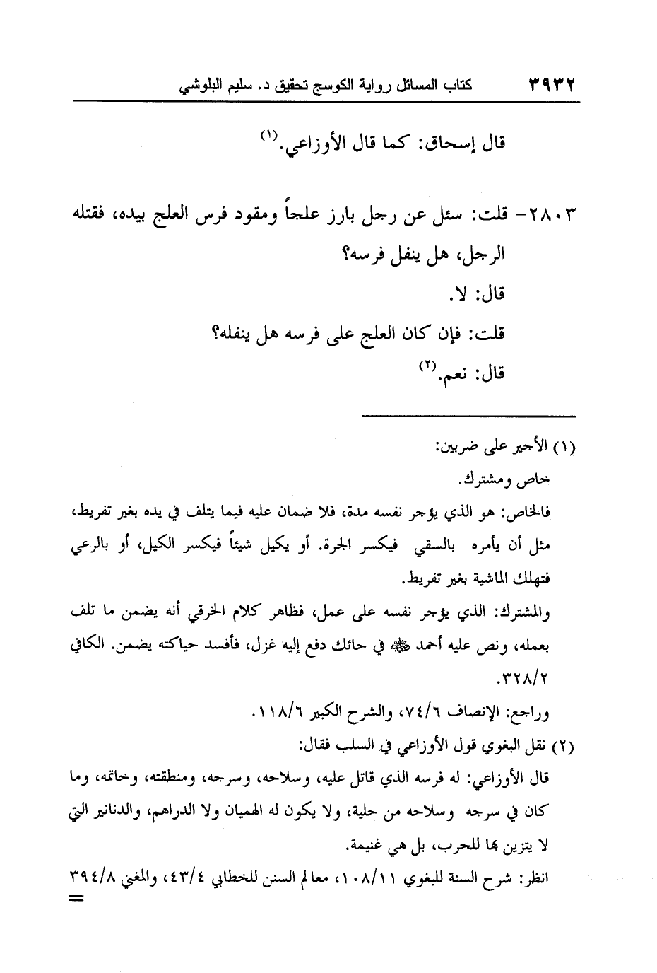 2 نقل البغوي قول الأوزاعي في السلب فقال: