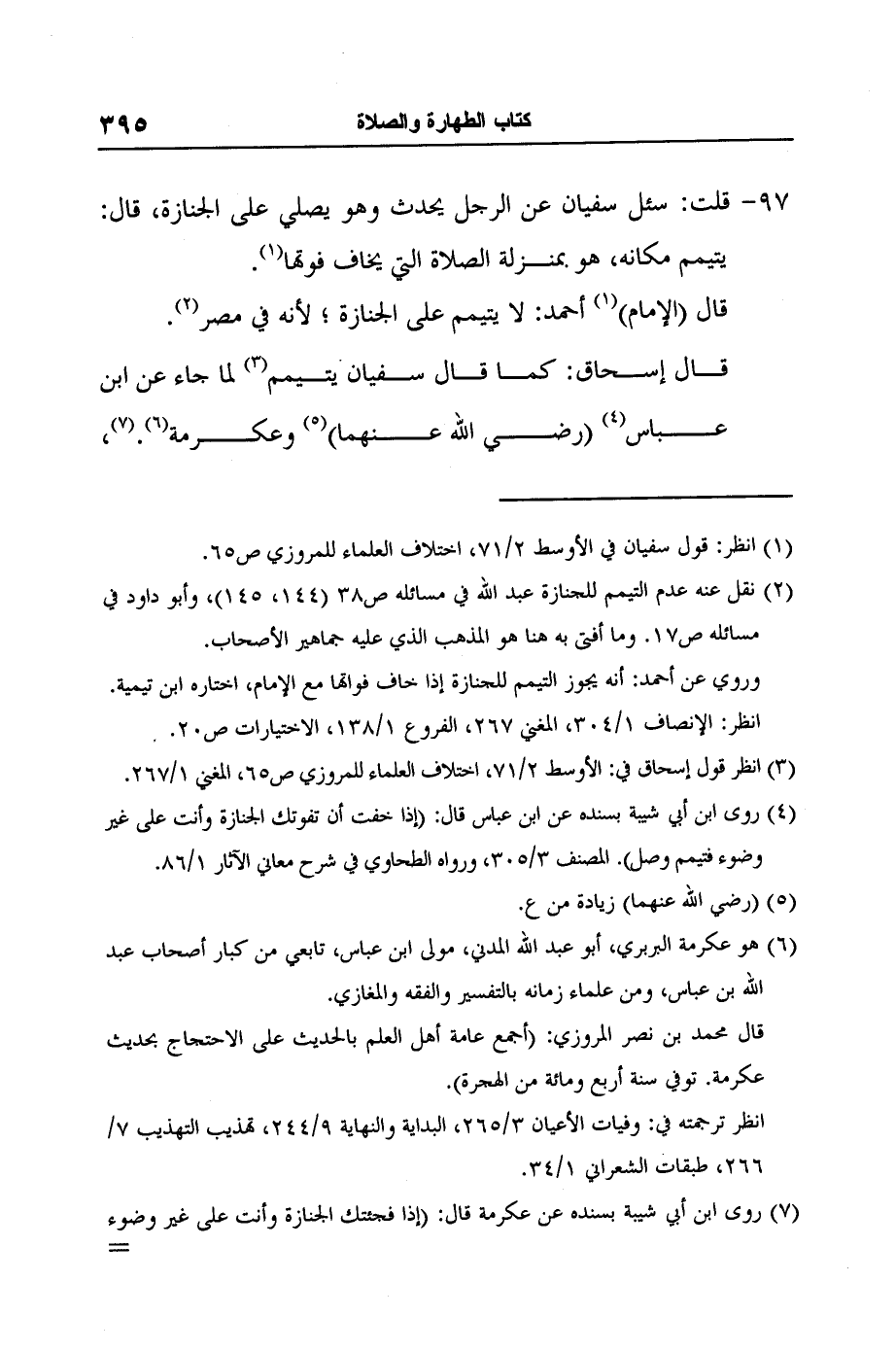7 روى ابن أبي شيبة بسنده عن عكرمة قال: (إذا فجئتك الجنازة وأنت على غير وضوء فتيمم وصل عليها) . المصنف 3/305