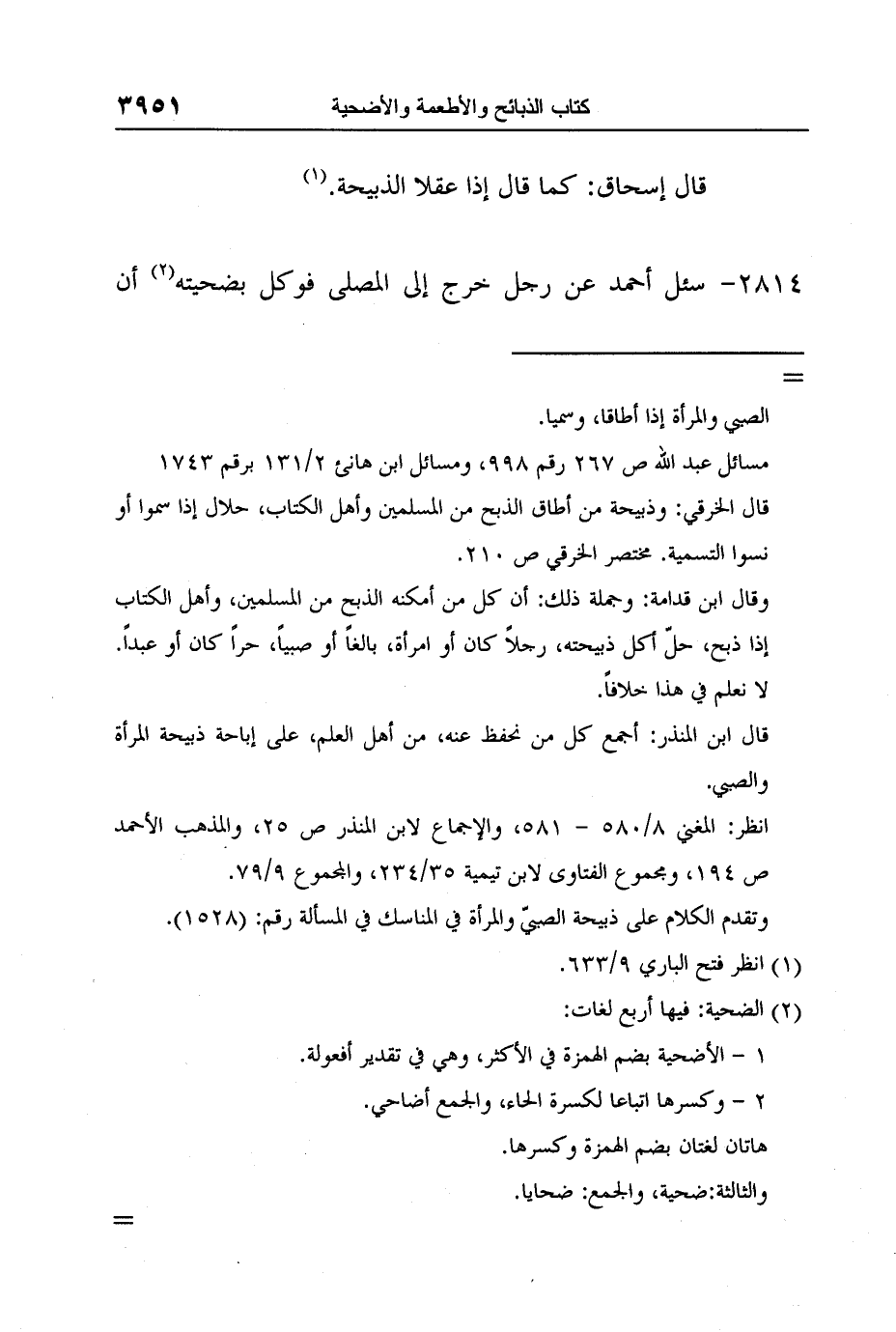 [2814-] سئل أحمد عن رجل خرج إلى المصلى فوكل بضحيته 2 أن