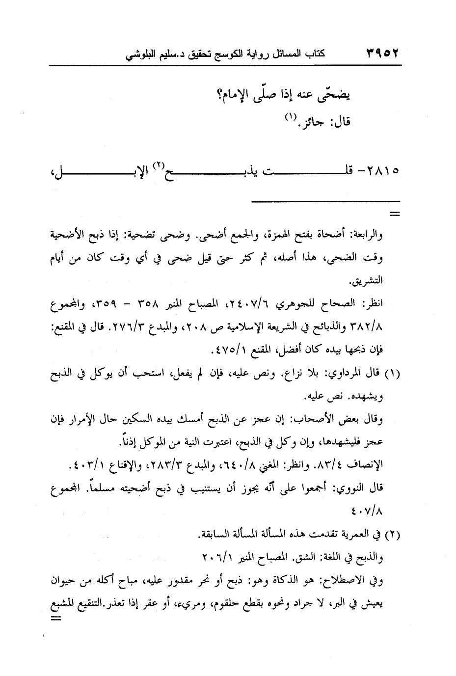 1 قال المرداوي: بلا نزاع. ونص عليه، فإن لم يفعل، استحب أن يوكل في الذبح ويشهده. نص عليه.