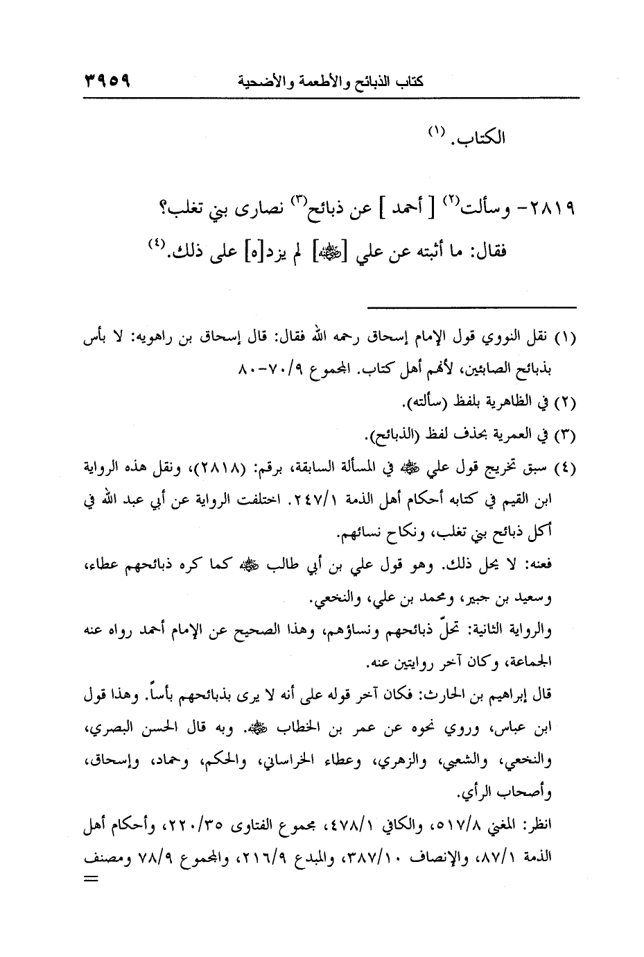 [2819-] وسألت 2 [أحمد] عن ذبائح 3 نصارى بني تغلب؟