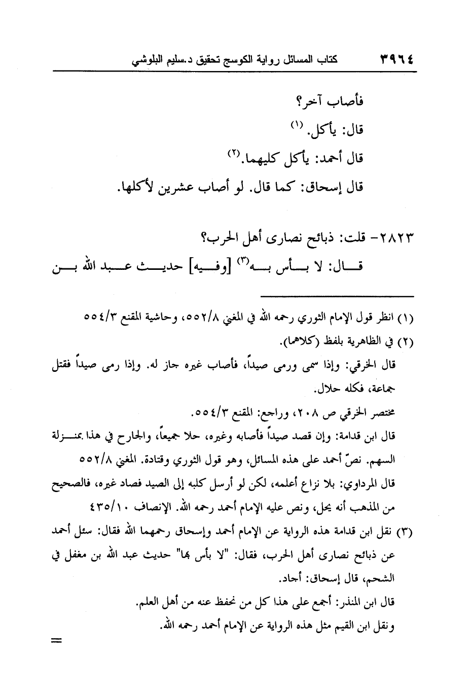 3 نقل ابن قدامة هذه الرواية عن الإمام أحمد وإسحاق رحمهما الله فقال: سئل أحمد عن ذبائح نصارى أهل الحرب، فقال: "لا بأس بها" حديث عبد الله بن مغفل في الشحم، قال إسحاق: أجاد.