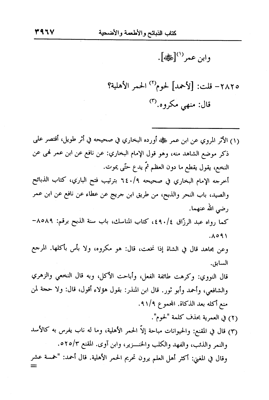 [2825-] قلت: [لأحمد] لحوم 2 الحمر الأهلية؟