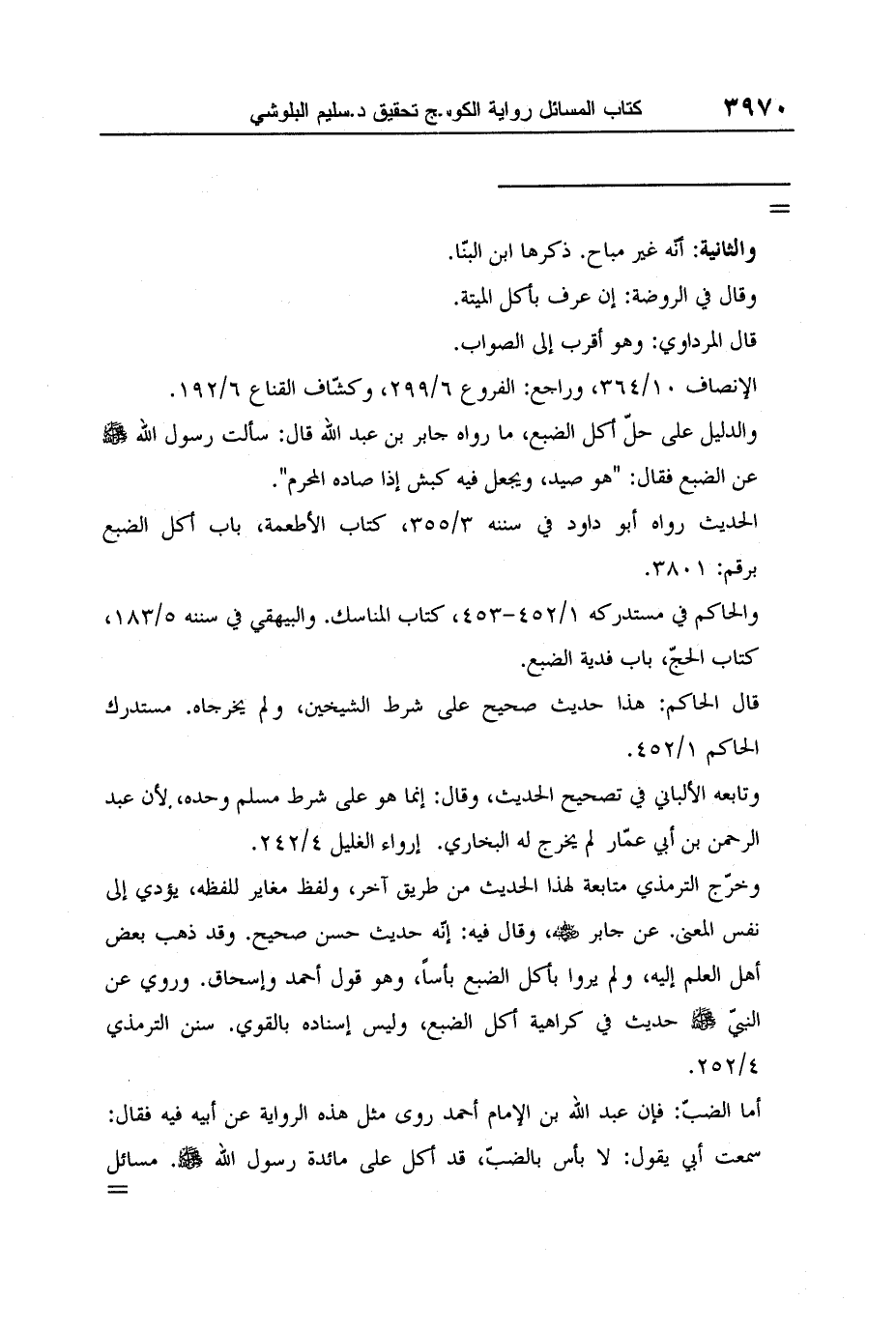 أما الضبّ: فإن عبد الله بن الإمام أحمد روى مثل هذه الرواية عن أبيه فيه فقال: سمعت أبي يقول: لا بأس بالضبّ، قد أكل على مائدة رسول الله صلى الله عليه وسلم. مسائل عبد الله ص270 برقم: 1006.