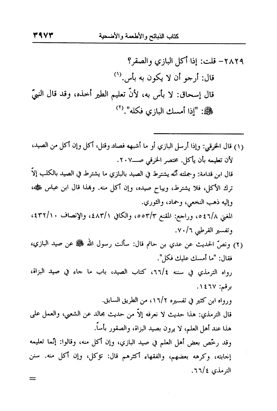 2 ونصّ الحديث عن عدي بن حاتم قال: سألت رسول الله صلى الله عليه وسلم عن صيد البازي، فقال: "ما أمسك عليك فكل".