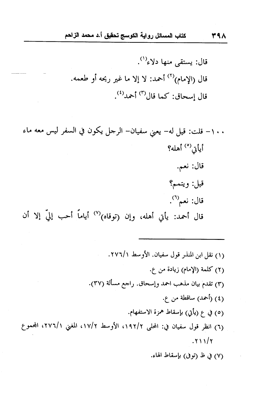 6 انظر قول سفيان في: المحلى 2/192، الأوسط 2/17، المغني 1/276، المجموع 2/211.
