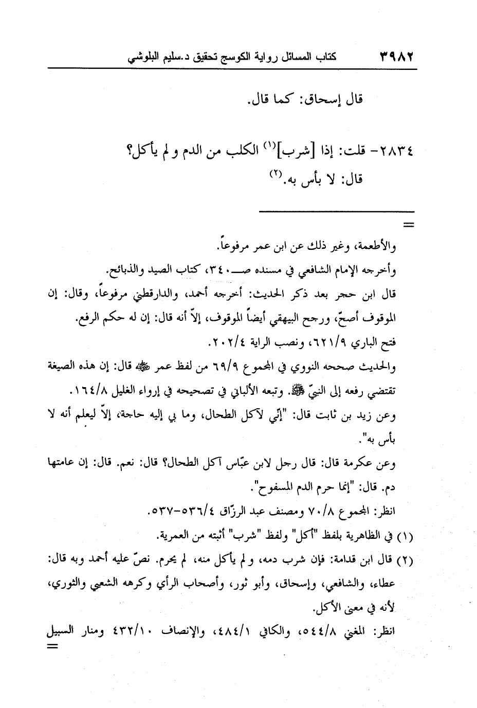 [2834-] قلت: إذا [شرب] 1 الكلب من الدم ولم يأكل؟
