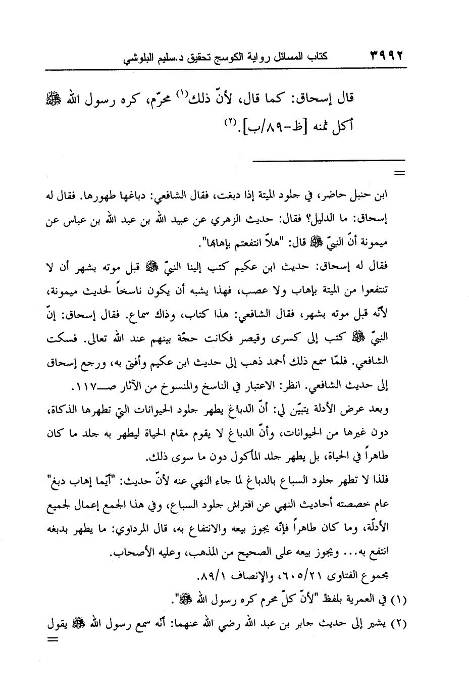 قال إسحاق: كما قال، لأنّ ذلك 1 محرّم، كره رسول الله صلى الله عليه وسلم أكل ثمنه [ظ-89/ب] . 2