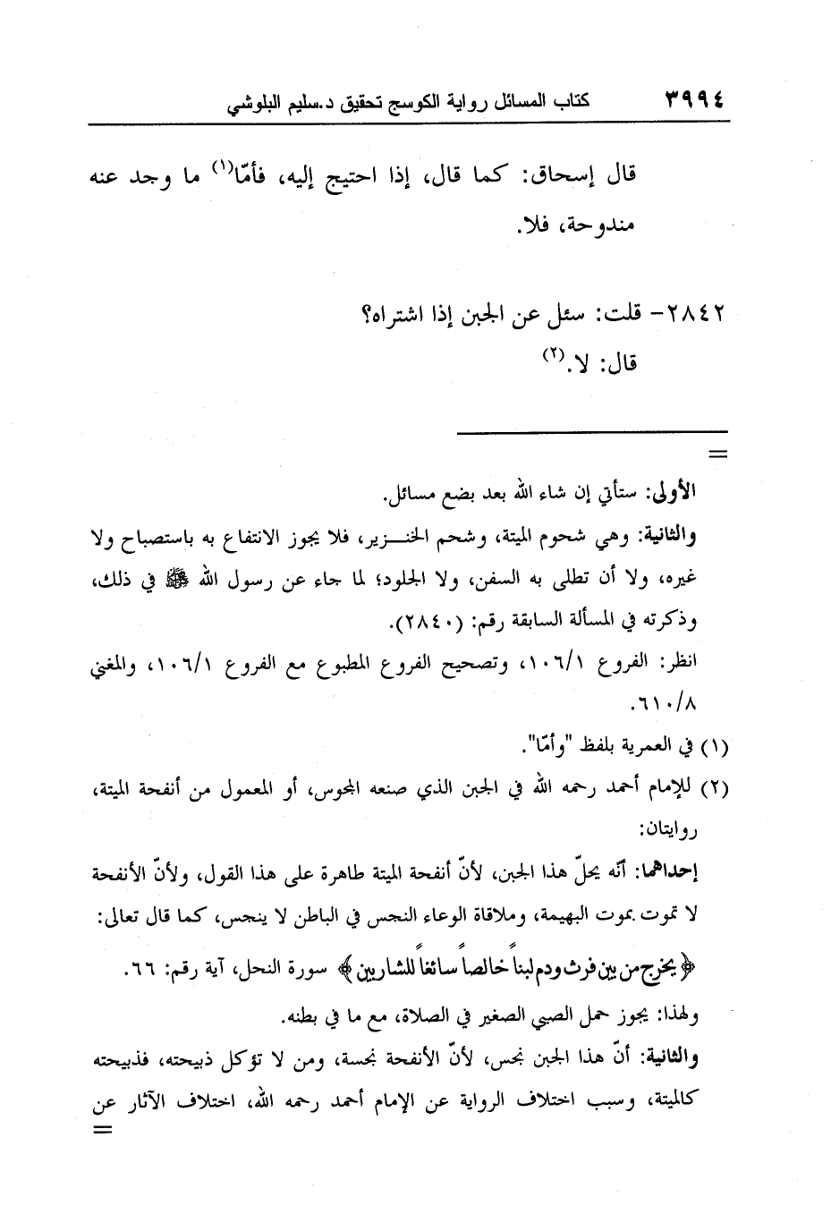 2 للإمام أحمد رحمه الله في الجبن الذي صنعه المجوس، أو المعمول من أنفحة الميتة، روايتان:
