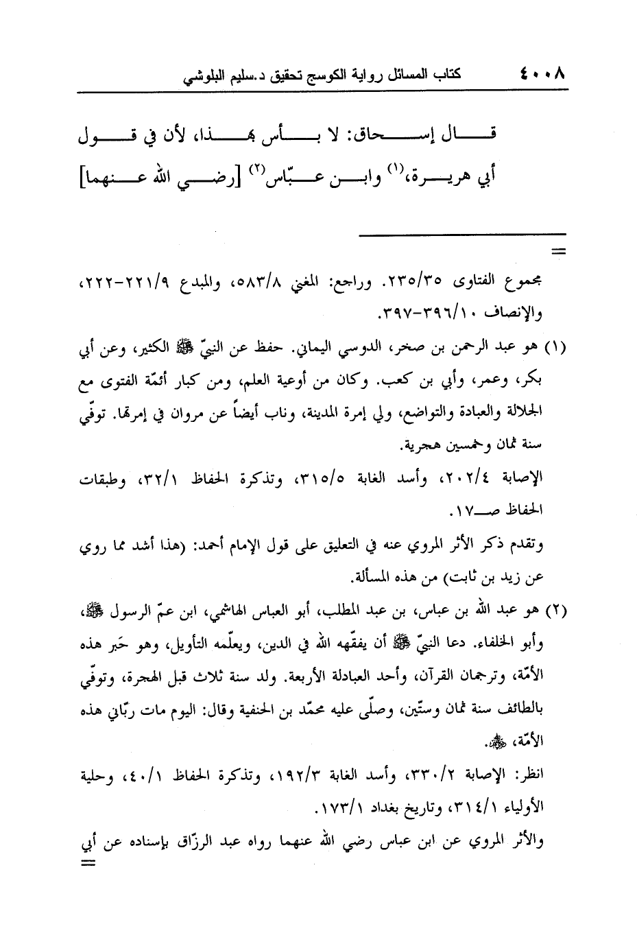 قال إسحاق: لا بأس بهذا، لأن في قول أبي هريرة، 1 وابن عبّاس 2 [رضي الله عنهما]
