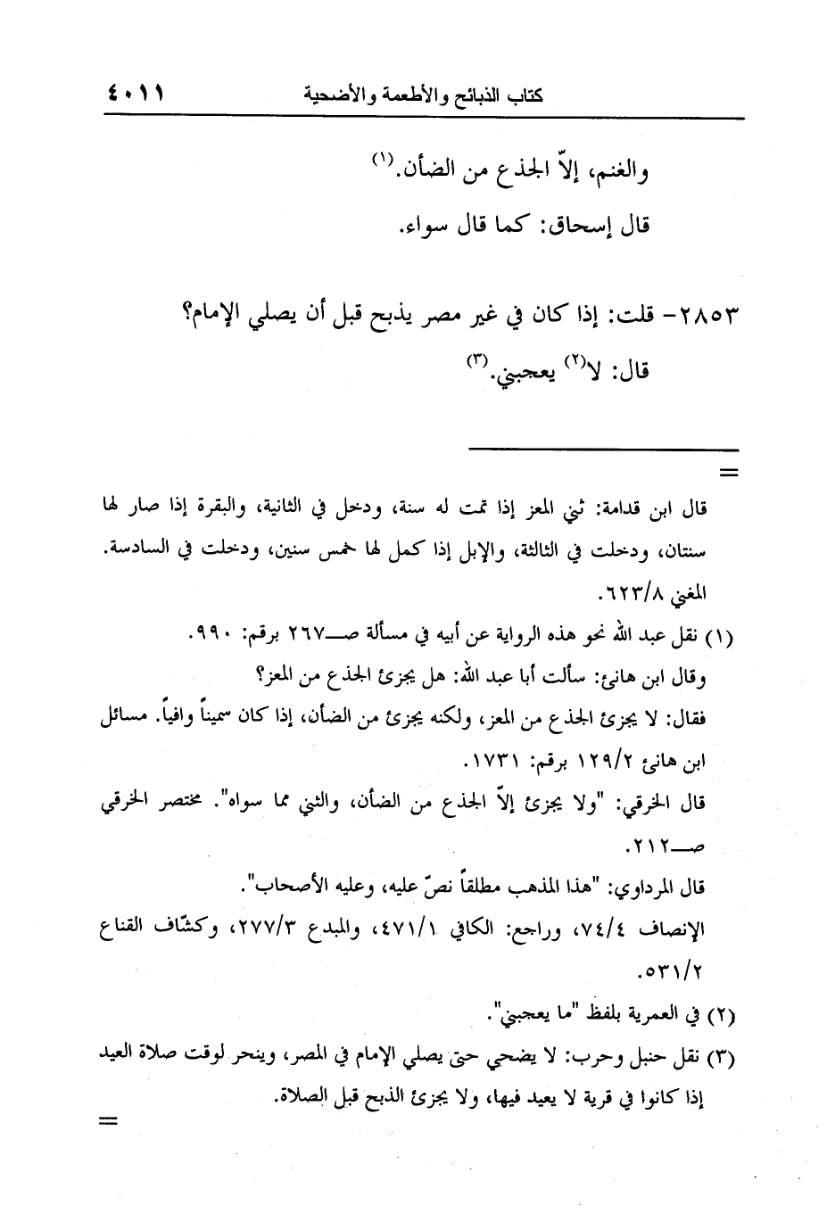 وقال ابن هانئ: سألت أبا عبد الله: هل يجزئ الجذع من المعز؟