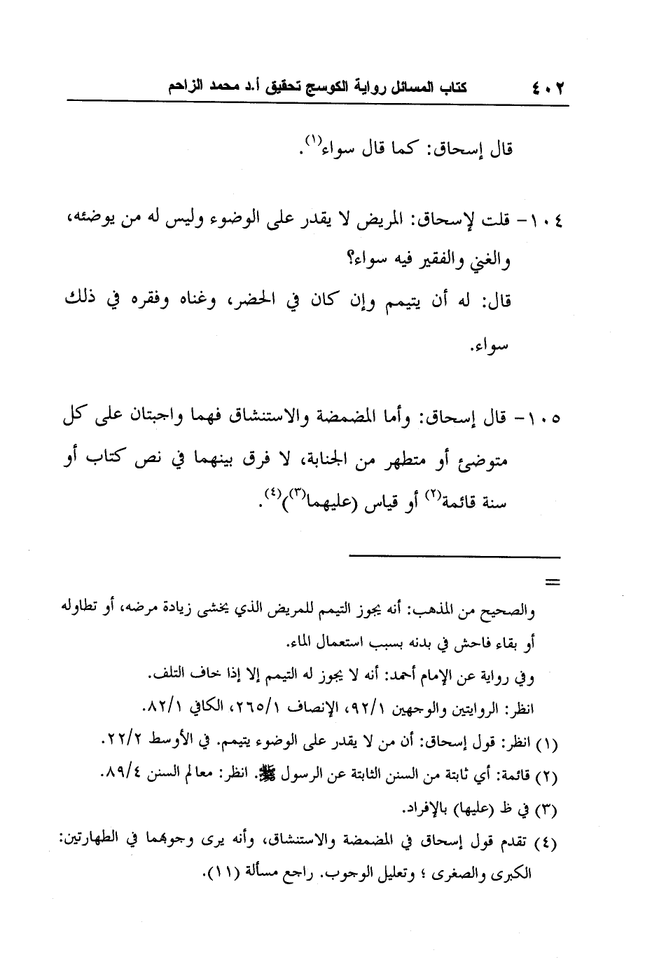 4 تقدم قول إسحاق في المضمضة والاستنشاق، وأنه يرى وجوبهما في الطهارتين: الكبرى والصغرى؛ وتعليل الوجوب. راجع مسألة (11) .