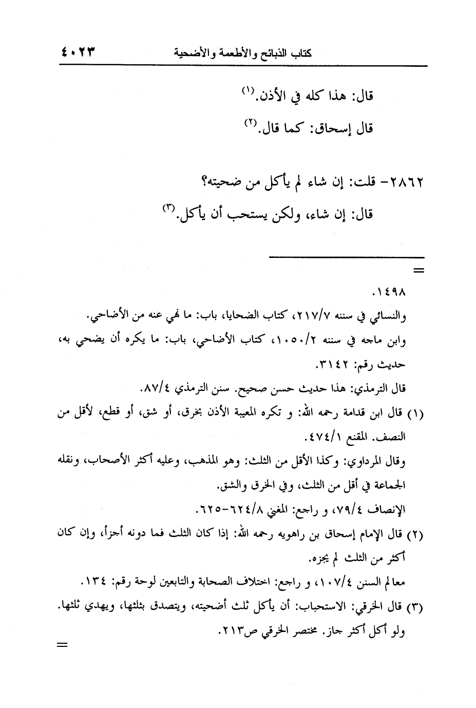 2 قال الإمام إسحاق بن راهويه رحمه الله: إذا كان الثلث فما دونه أجزأ، وإن كان أكثر من الثلث لم يجزه.