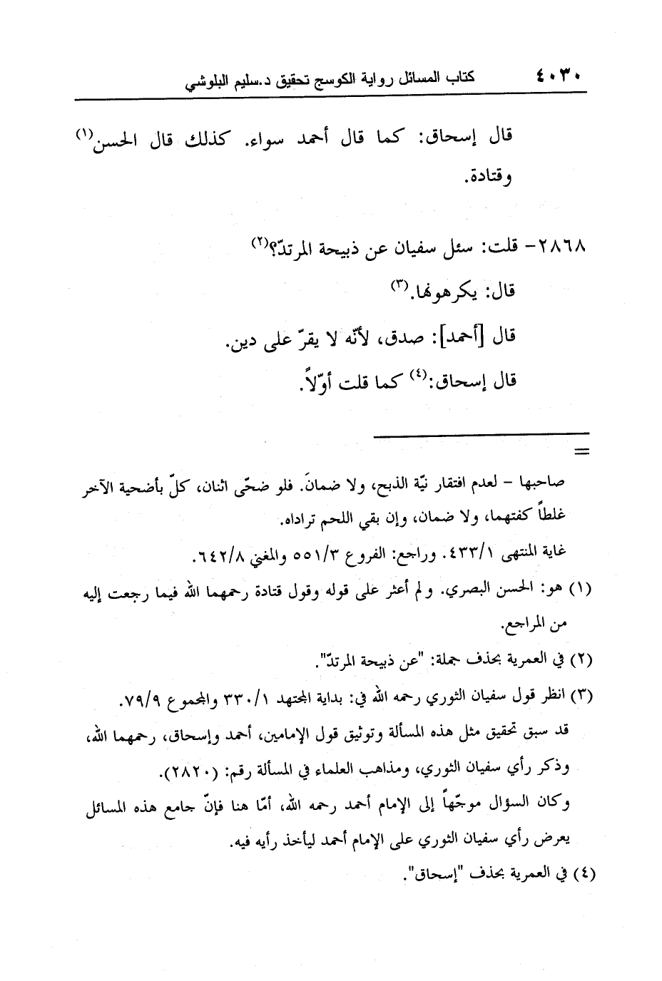 [2868-] قلت: سئل سفيان عن ذبيحة المرتدّ؟ 2