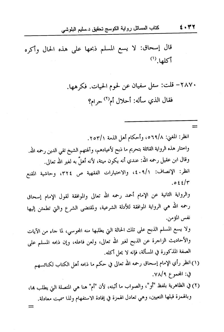 1 انظر رأي الإمام إسحاق رحمه الله تعالى في حكم ما ذبحه أهل الكتاب لكنائسهم