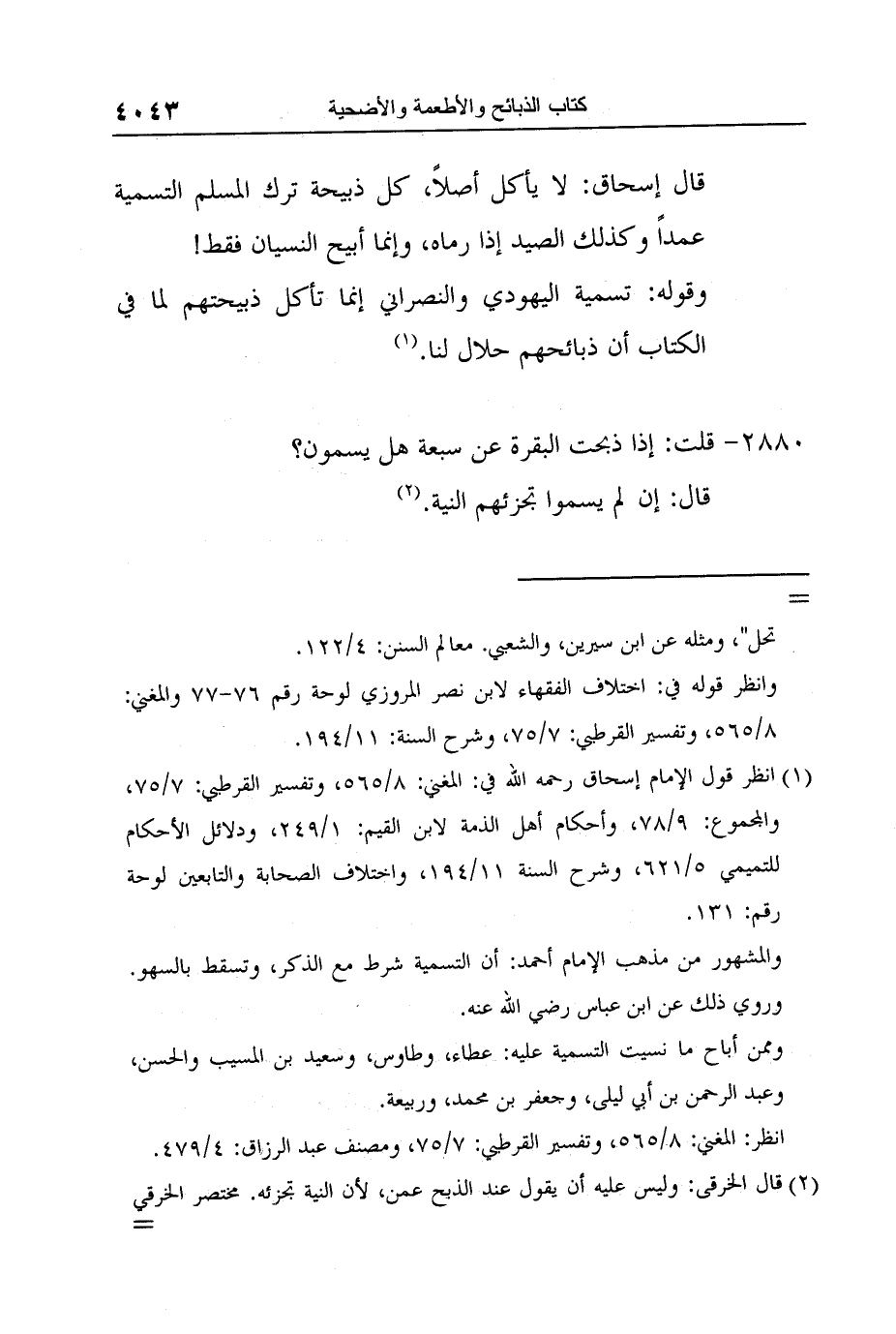 قال إسحاق: لا يأكل أصلاً، كل ذبيحة ترك المسلم التسمية عمداً وكذلك الصيد إذا رماه، وإنما أبيح النسيان فقط!