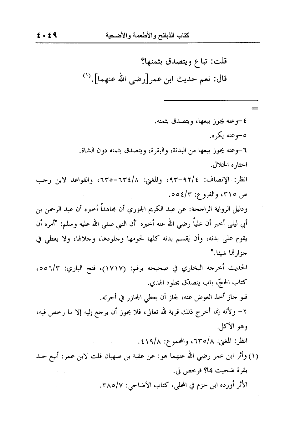 1 وأثر ابن عمر رضي الله عنهما هو: عن عقبة بن صهبان قلت لابن عمر: أبيع جلد بقرة ضحيت بها؟ فرخص لي.