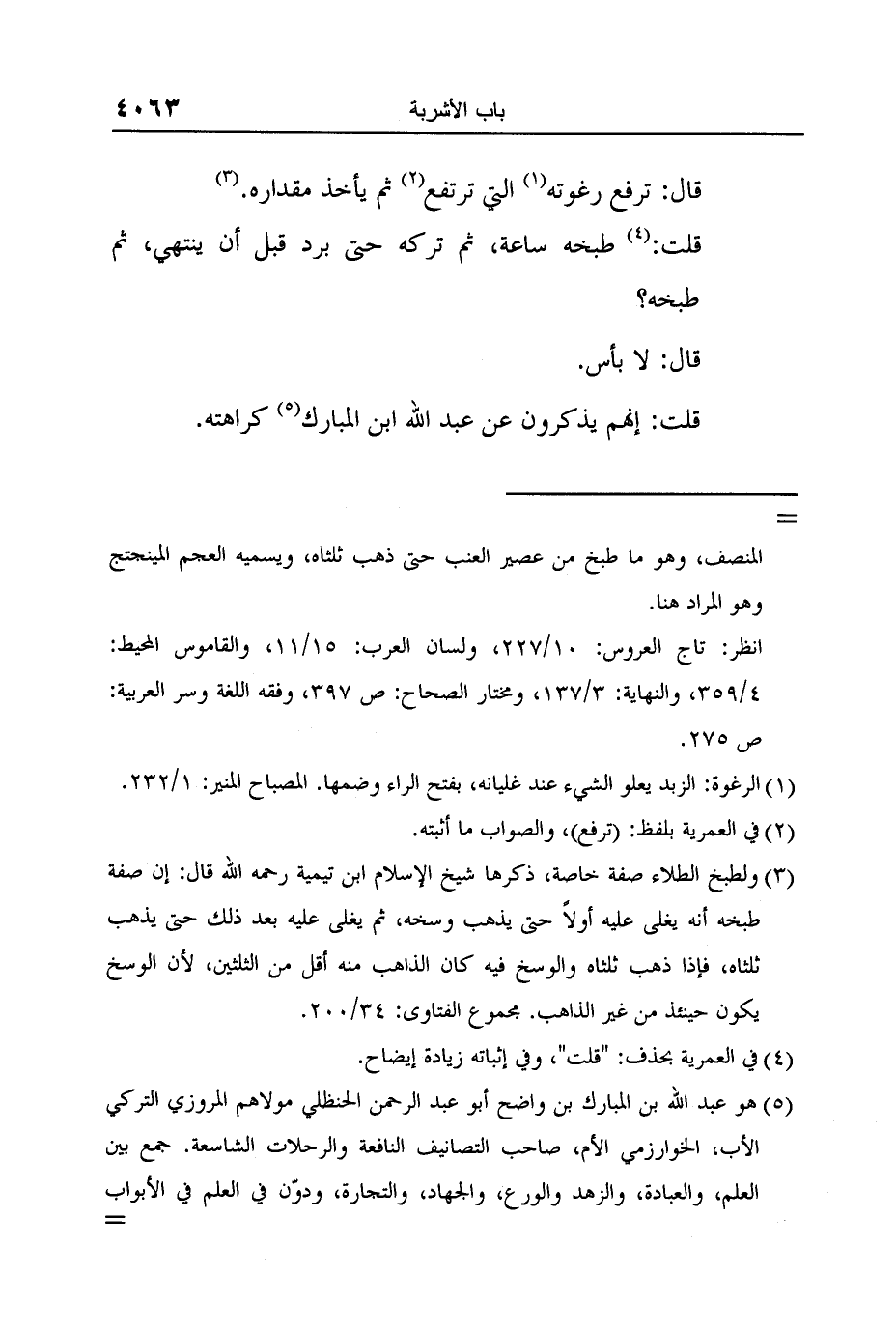قلت: إنهم يذكرون عن عبد الله ابن المبارك 5 كراهته.