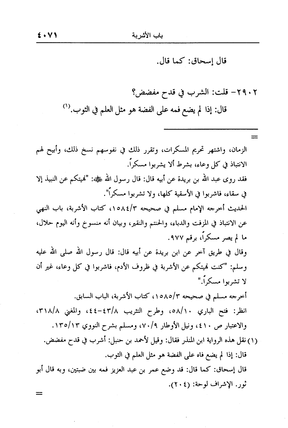 1 نقل هذه الرواية ابن المنذر فقال: وقيل لأحمد بن حنبل: أشرب في قدح مفضض.