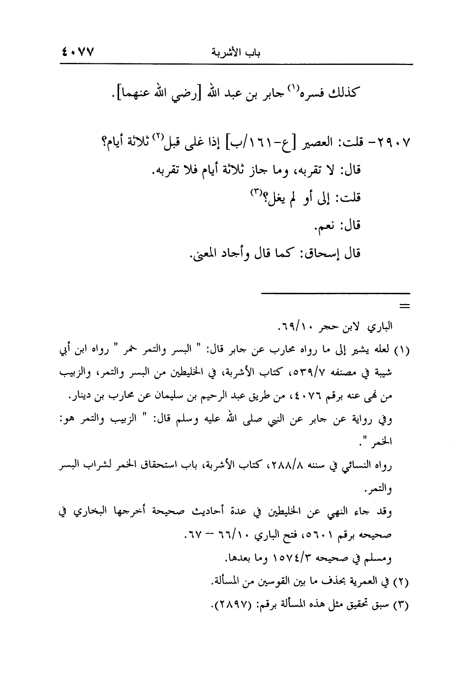 1 لعله يشير إلى ما رواه محارب عن جابر قال: " البسر والتمر خمر " رواه ابن أبي شيبة في مصنفه 7/539، كتاب الأشربة، في الخليطين من البسر والتمر، والزبيب من نهى عنه برقم 4076، من طريق عبد الرحيم بن سليمان عن محارب بن دينار.