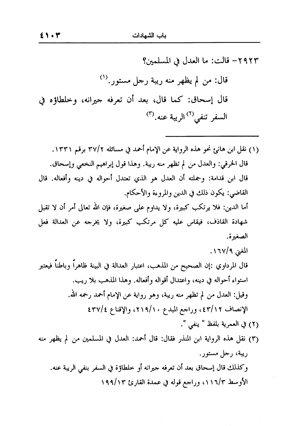 3 نقل هذه الرواية ابن المنذر فقال: قال أحمد: العدل في المسلمين من لم يظهر منه ريبة، رجل مستور.