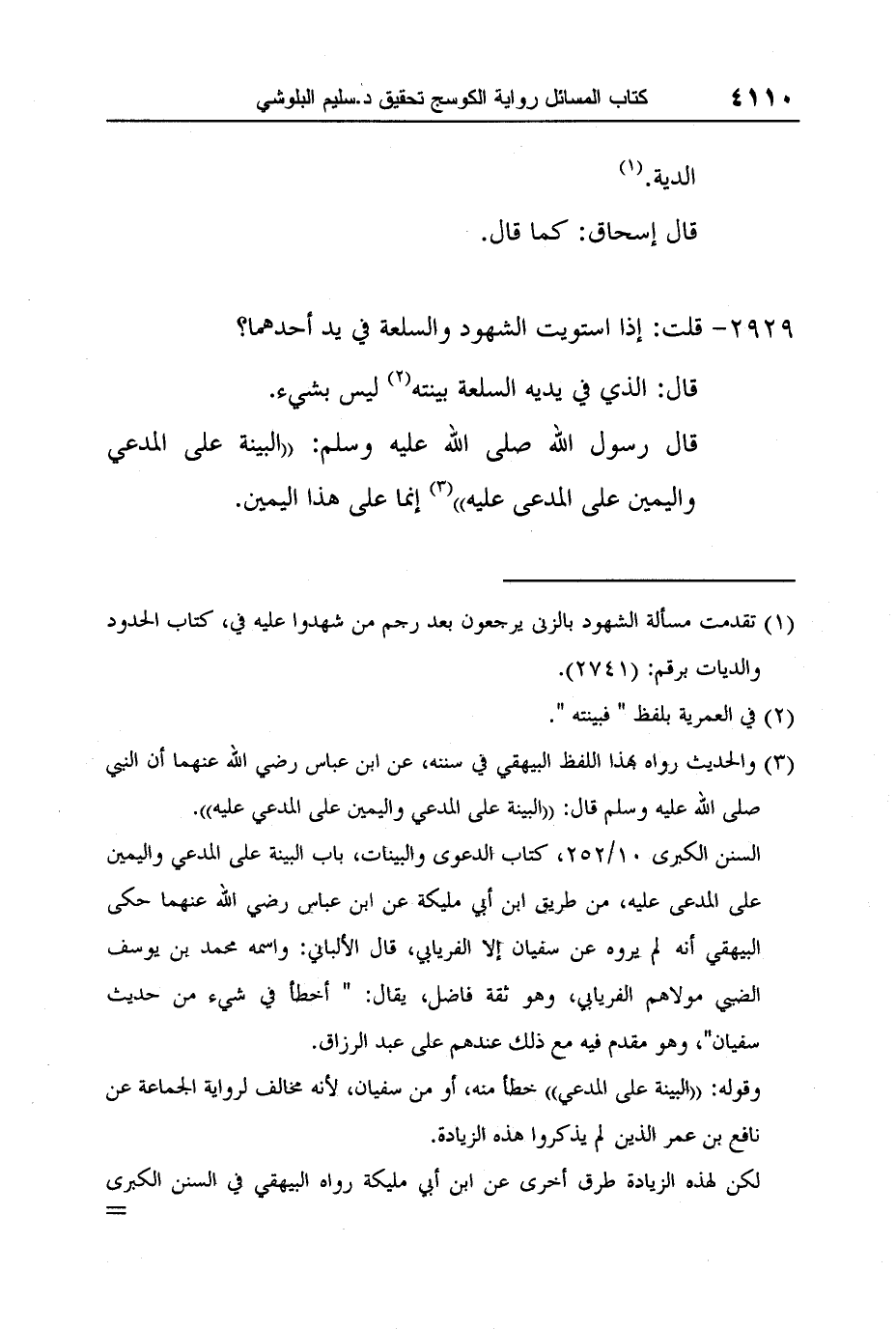 3 والحديث رواه بهذا اللفظ البيهقي في سننه، عن ابن عباس رضي الله عنهما أن النبي صلى الله عليه وسلم قال: "البينة على المدعي واليمين على المدعي عليه".