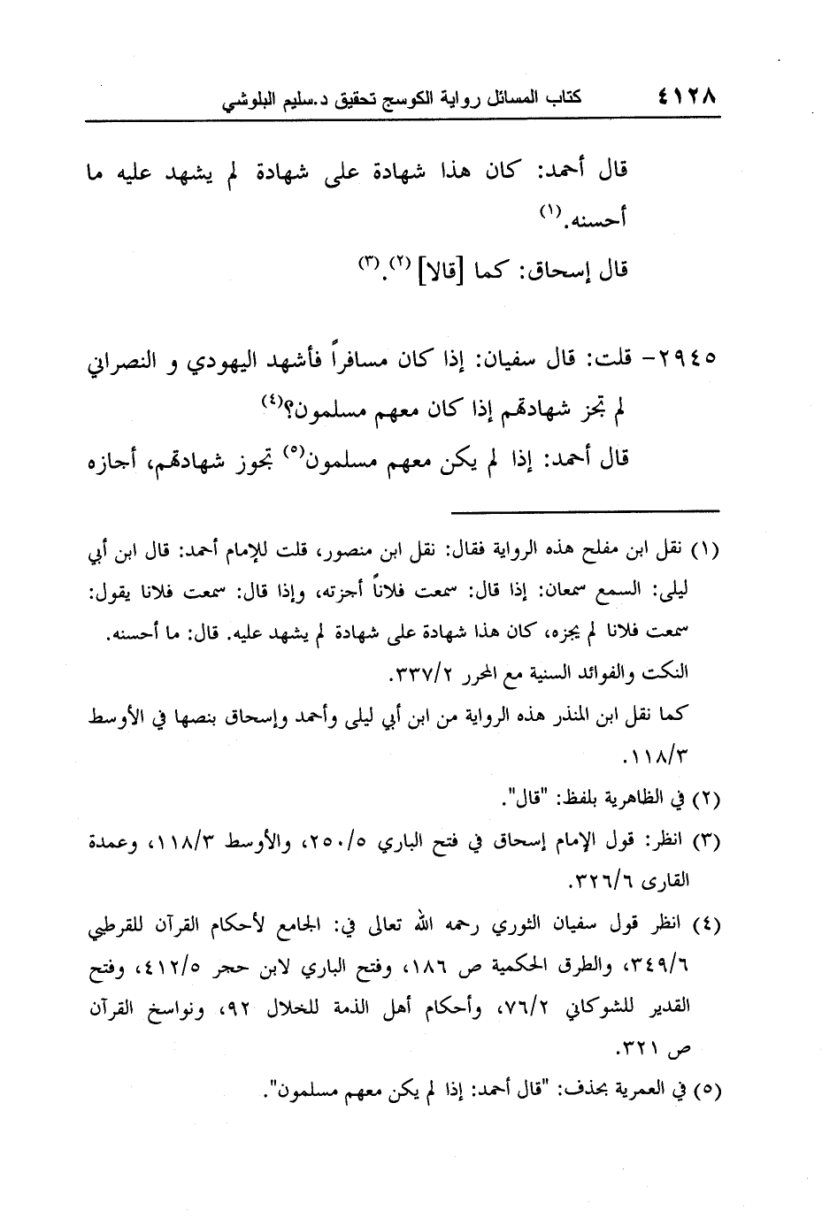 [2945-] قلت: قال سفيان: إذا كان مسافراً فأشهد اليهودي والنصراني لم تجز شهادتهم إذا كان معهم مسلمون؟ 4