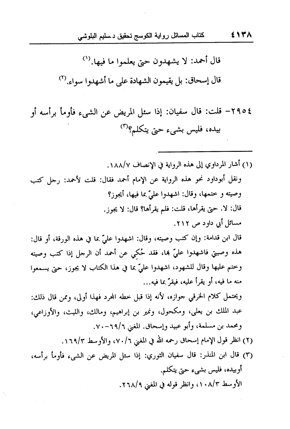 [2954-] قلت: قال سفيان: إذا سئل المريض عن الشىء فأومأ برأسه أو بيده، فليس بشىء حتى يتكلم؟ 3