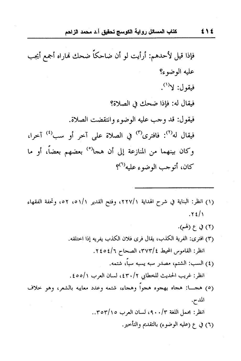 فيقال له2: فافترى3 في الصلاة على آخر أو سب4 آخرا، وكان بينهما من المنازعة إلى أن هجا5 بعضهم بعضاً، أو ما كان، أتوجب الوضوء عليه6؟