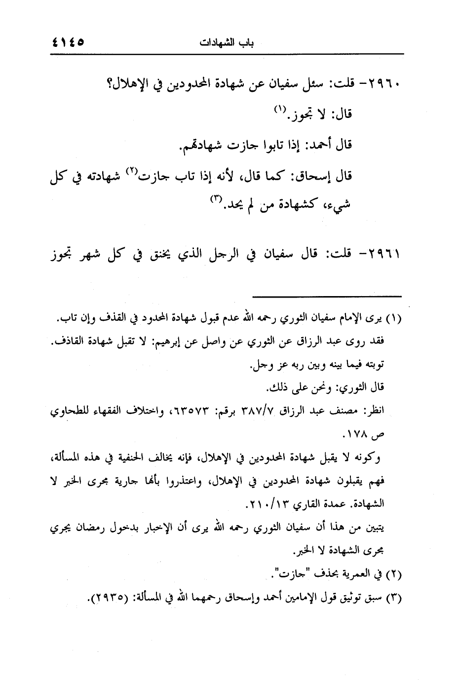 [2960-] قلت: سئل سفيان عن شهادة المحدودين في الإهلال؟