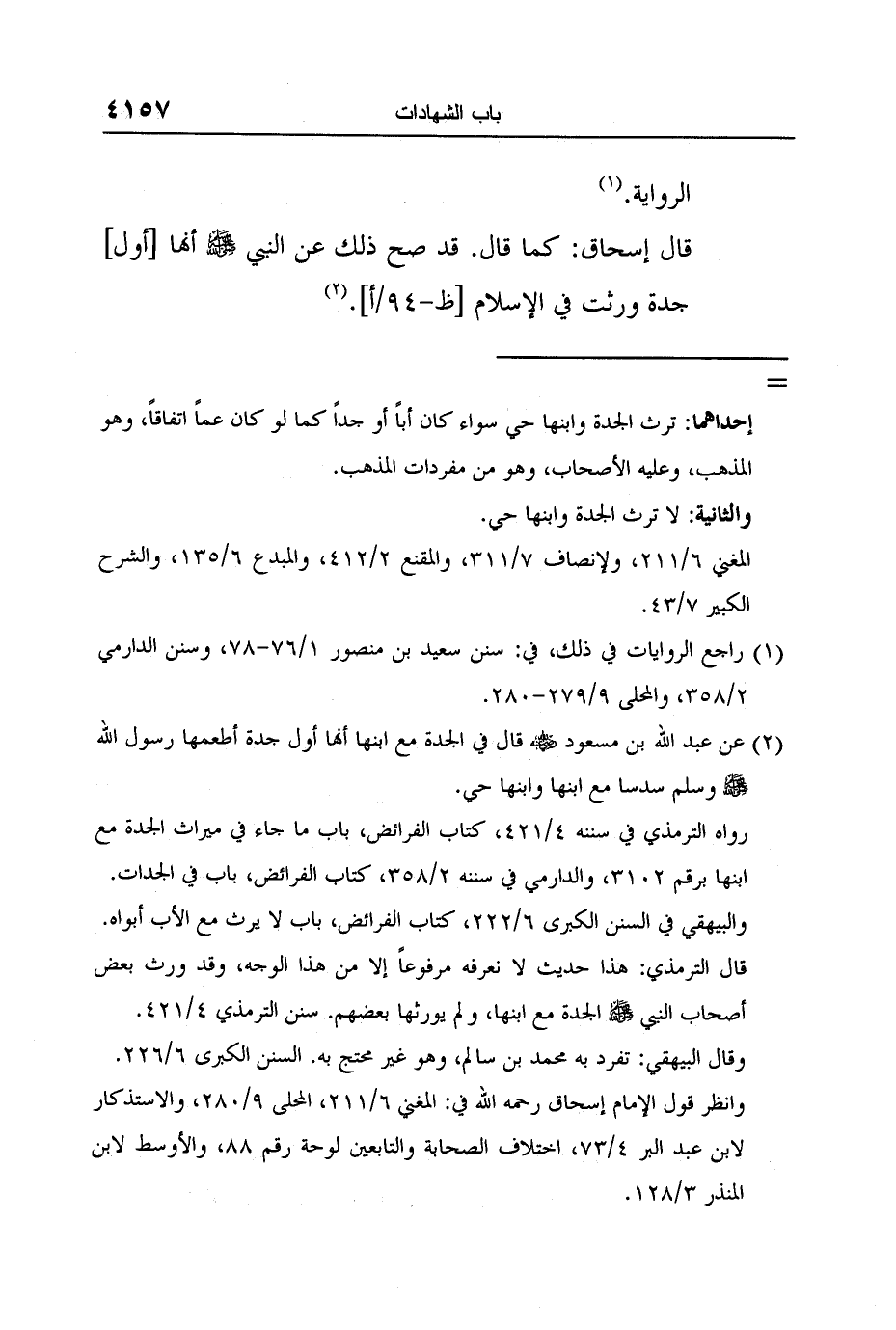 قال إسحاق: كما قال. قد صح ذلك عن النبي صلى الله عليه وسلم أنها [أول] جدة ورثت في الإسلام [ظ-94/أ] . 2