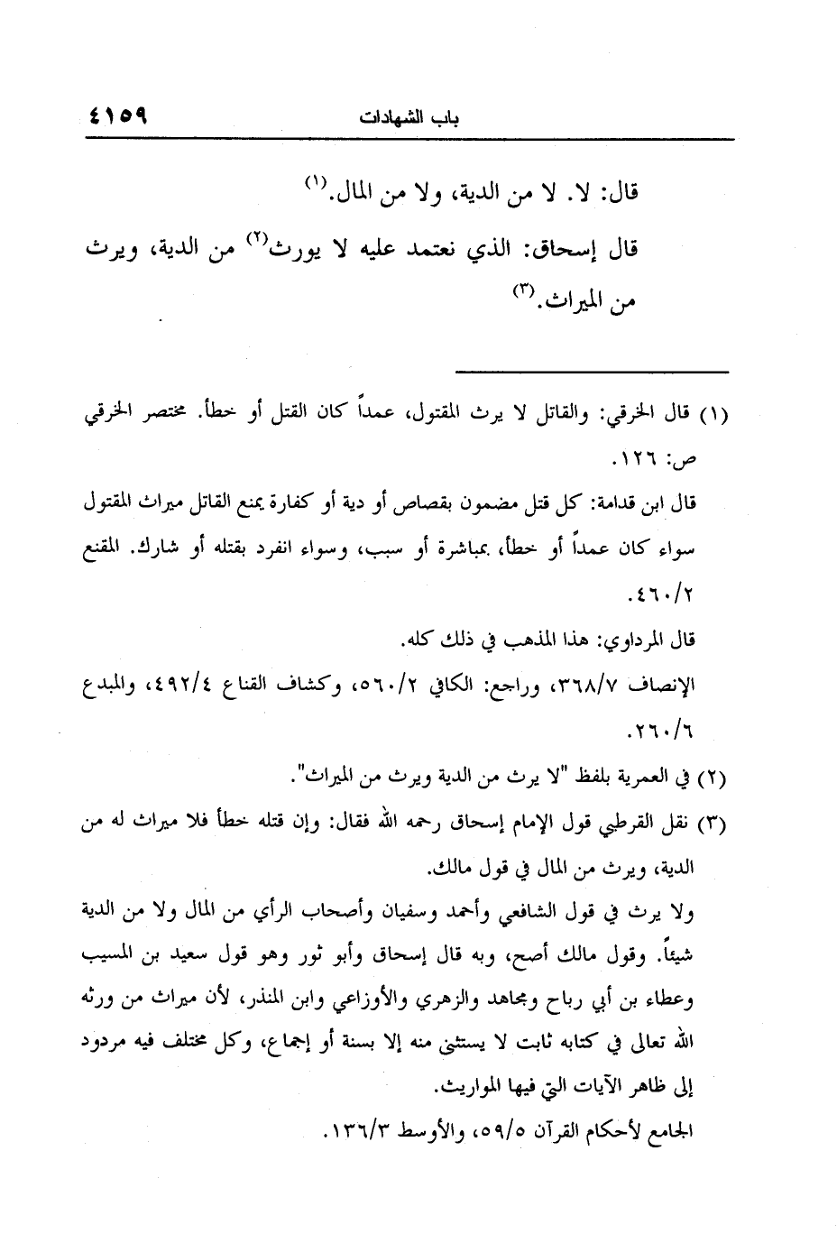 3 نقل القرطبي قول الإمام إسحاق رحمه الله فقال: وإن قتله خطأ فلا ميراث له من الدية، ويرث من المال في قول مالك.