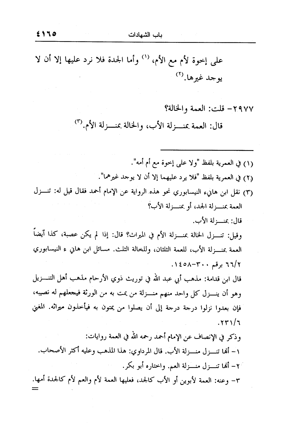3 نقل ابن هانيء النيسابوري نحو هذه الرواية عن الإمام أحمد فقال قيل له: تنزل العمة بمنزلة الجد، أو بمنزلة الأب؟