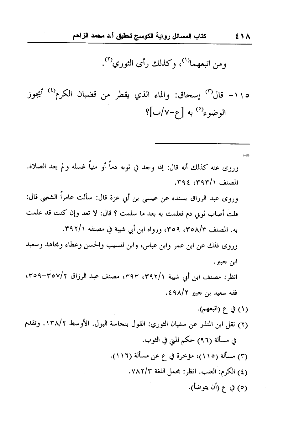 [115-] قال3 إسحاق: والماء الذي يقطر من قضبان الكرم4 أيجوز الوضوء5 به [ع-7/ب] ؟