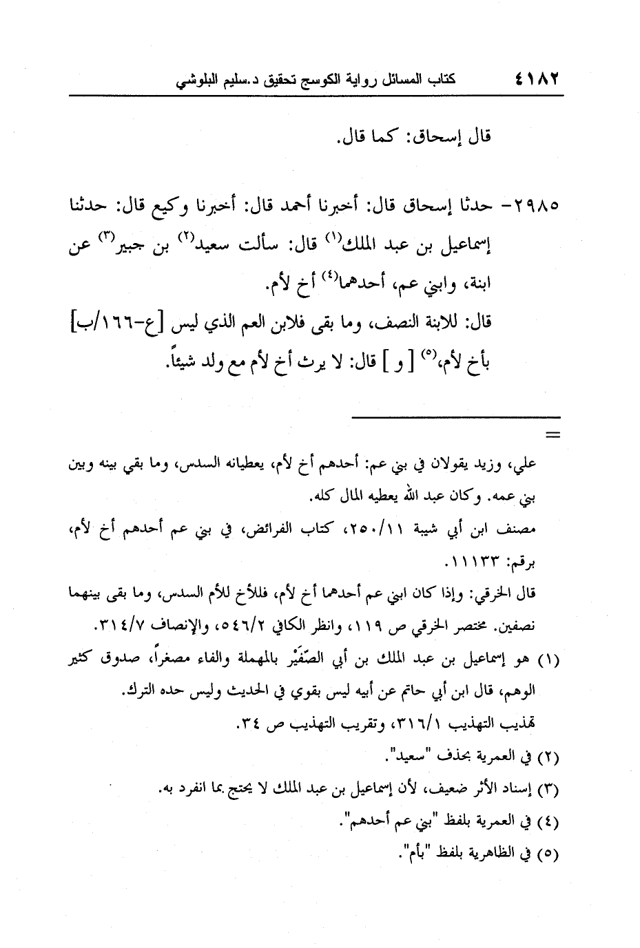 [2985-] حدثا إسحاق قال: أخبرنا أحمد قال: أخبرنا وكيع قال: حدثنا إسماعيل بن عبد الملك 1 قال: سألت سعيد 2 بن جبير 3 عن ابنة، وابني عم، أحدهما 4 أخ لأم.