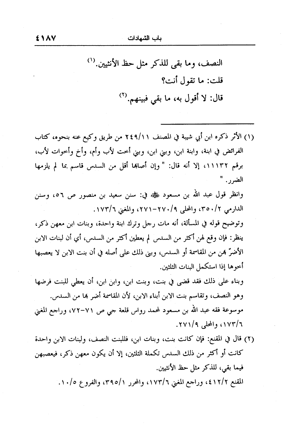 وانظر قول عبد الله بن مسعود رضي الله عنه في: سنن سعيد بن منصور ص 56، وسنن الدارمي 2/350، [] [] والمحلى 9/270-271، والمغني 6/173.