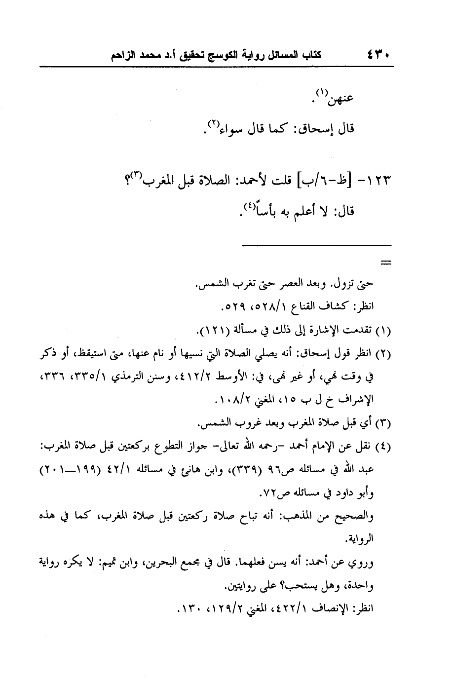 [123-[] ظ-6/ب] قلت لأحمد: الصلاة قبل المغرب3؟