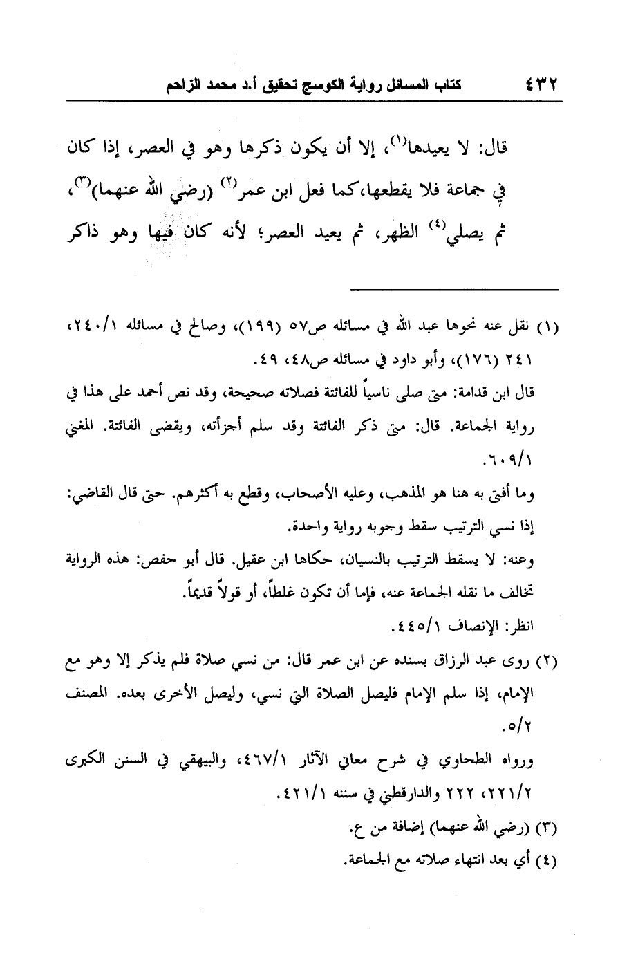 1 نقل عنه نحوها عبد الله في مسائله ص57 (199) ، وصالح في مسائله 1/240، 241 (176) ، وأبو داود في مسائله ص48، 49.