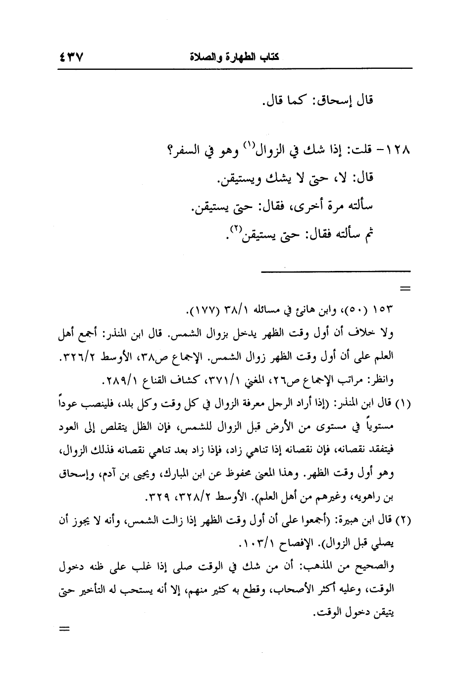 1 قال ابن المنذر: (إذا أراد الرجل معرفة الزوال في كل وقت وكل بلد، فلينصب عوداً مستوياً في مستوى من الأرض قبل الزوال للشمس، فإن الظل يتقلص إلى العود فيتفقد نقصانه، فإن نقصانه إذا تناهي زاد، فإذا زاد بعد تناهي نقصانه فذلك الزوال، وهو أول وقت الظهر. وهذا المعنى محفوظ عن ابن المبارك، ويحيى بن آدم، وإسحاق بن راهويه، وغيرهم من أهل العلم) . الأوسط 2/328، 329.