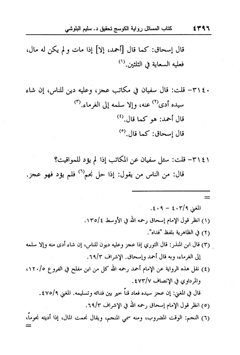 [3141-] قلت: سئل سفيان عن المكاتب إذا لم يؤد للمواقيت؟