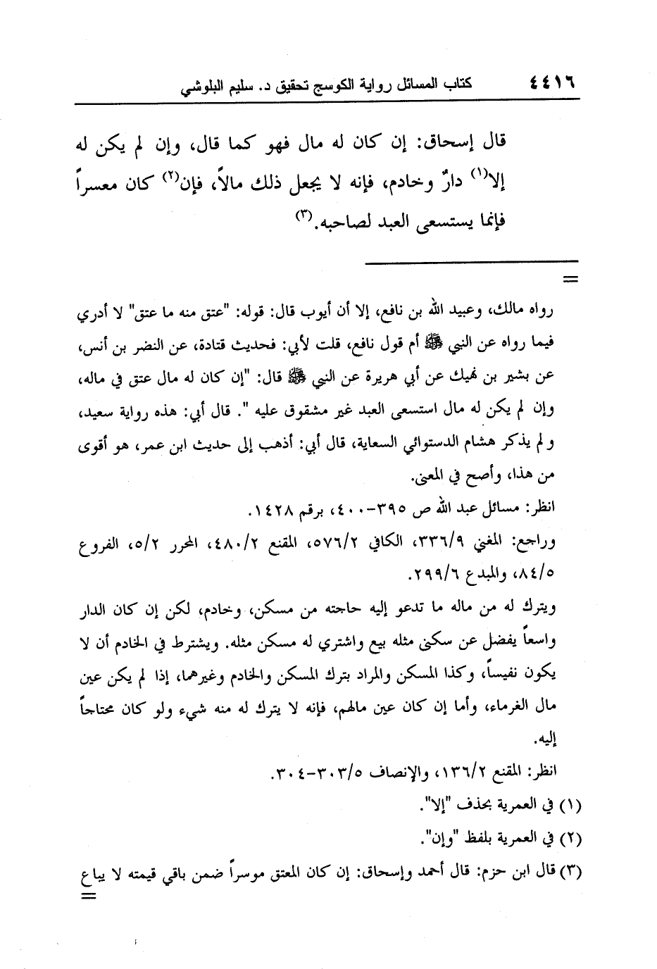 3 قال ابن حزم: قال أحمد وإسحاق: إن كان المعتق موسراً ضمن باقي قيمته لا يباع له في ذلك داره، قال إسحاق: ولا خادمه. المحلى 9/193