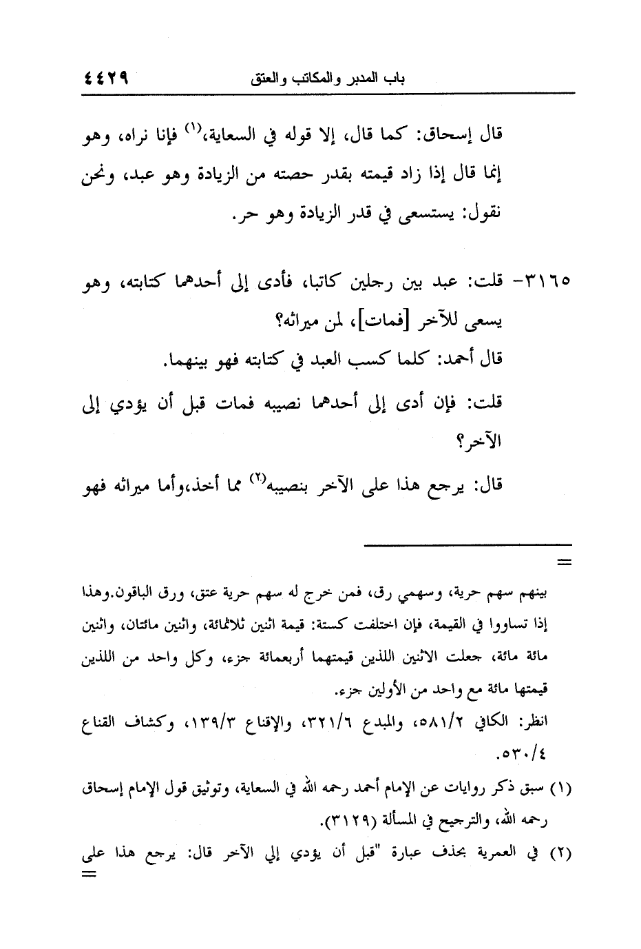 1 سبق ذكر روايات عن الإمام أحمد رحمه الله في السعاية، وتوثيق قول الإمام إسحاق رحمه الله، والترجيح في المسألة (3129) .