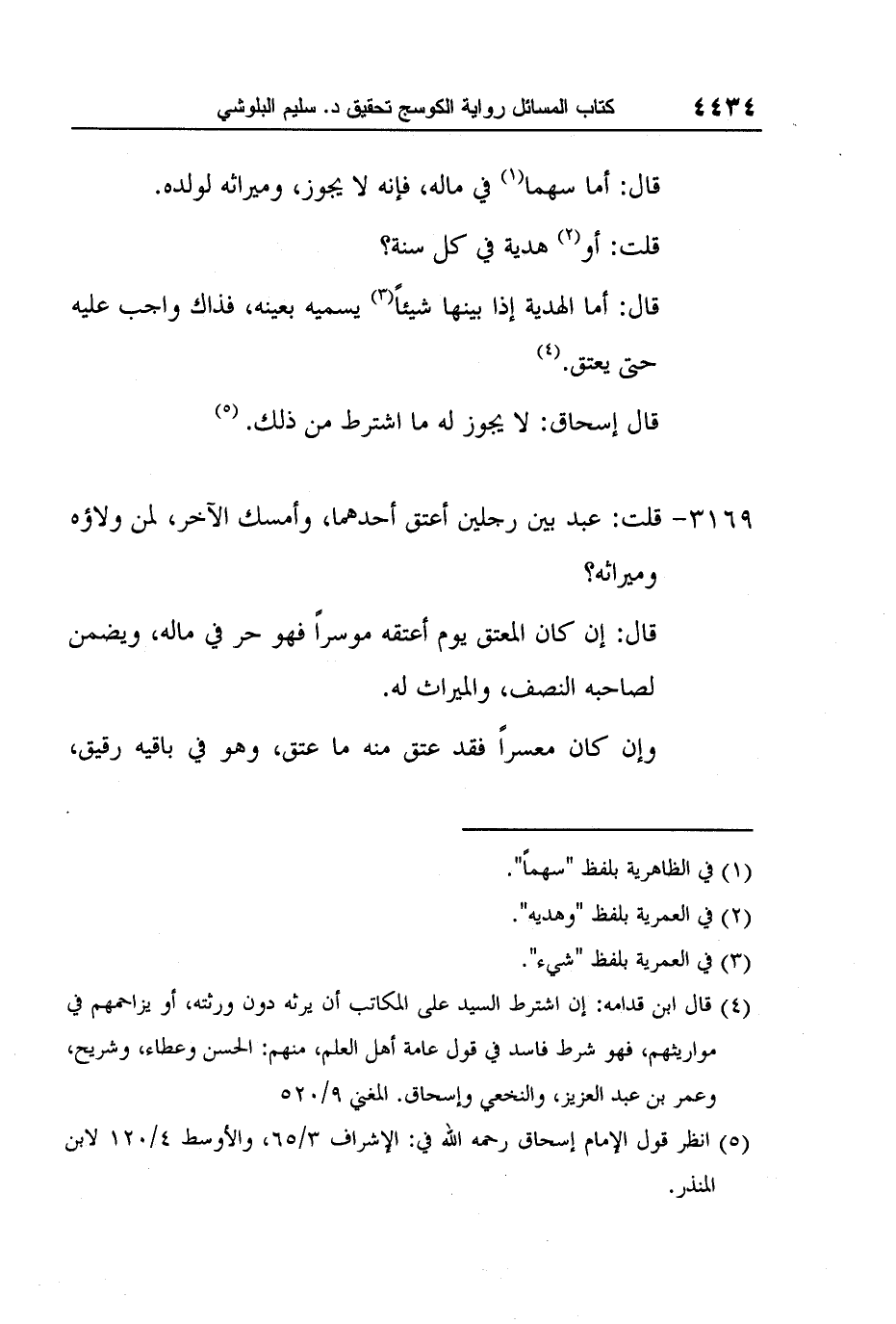 4 قال ابن قدامه: إن اشترط السيد على المكاتب أن يرثه دون ورثته، أو يزاحمهم في مواريثهم، فهو شرط فاسد في قول عامة أهل العلم، منهم: الحسن وعطاء، وشريح، وعمر بن عبد العزيز، والنخعي وإسحاق. المغني 9/520